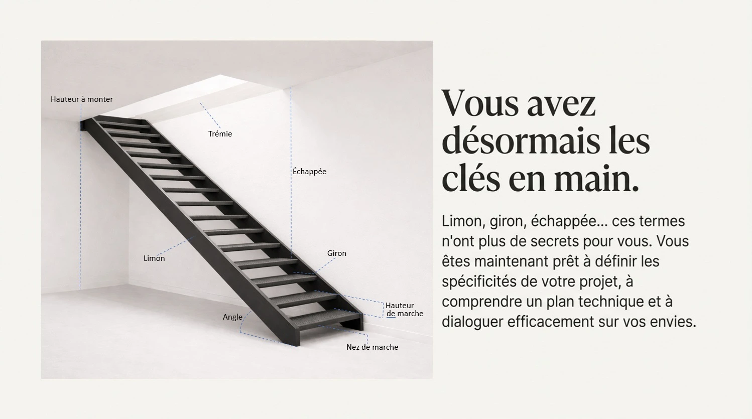 Vous voulez installer un escalier sur mesure, mais vous vous heurtez à des termes techniques et vous êtes perdus.